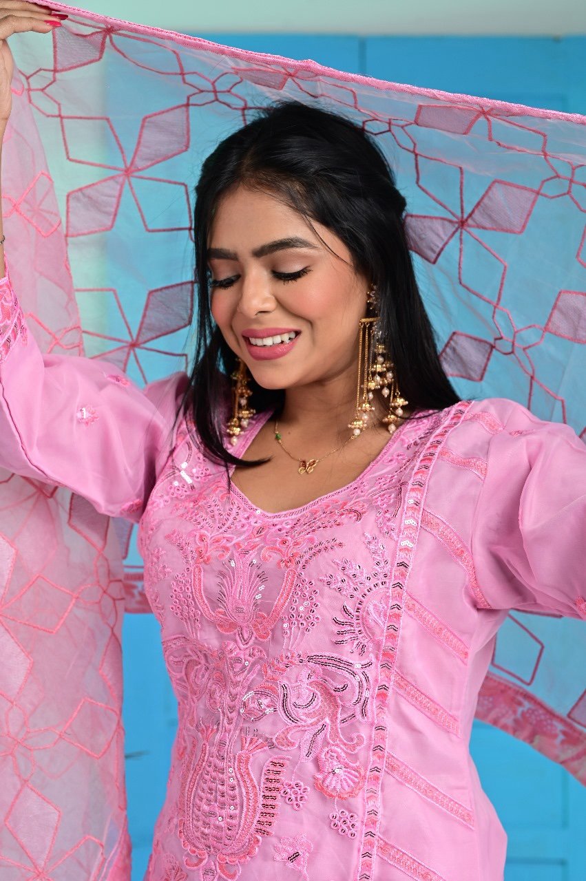 *Premium Chundri Indian Fabric Kameez Set – With Embroidery, Karcupi Work & Designed Dupatta*